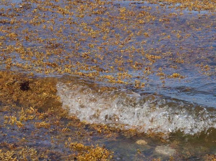 "El sargazo es una macroalga marina parda del género Sargassum. Se le puede ver flotando en la superficie del océano. Está compuesto principalmente de dos especies, S. natans y S. fluitans." - Más información: ¿Sabes qué es el sargazo?